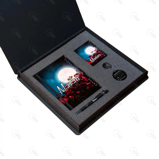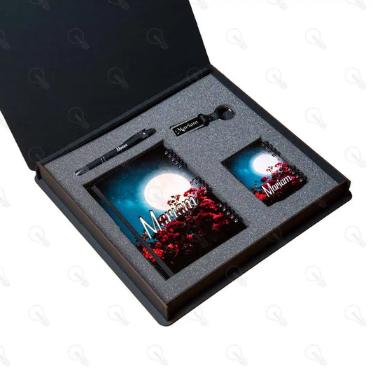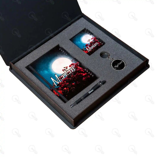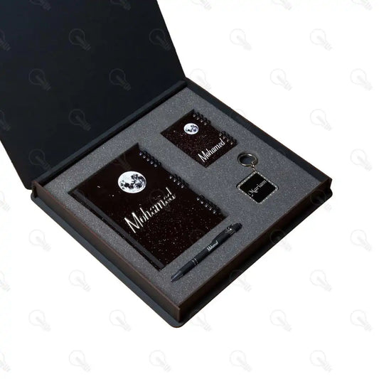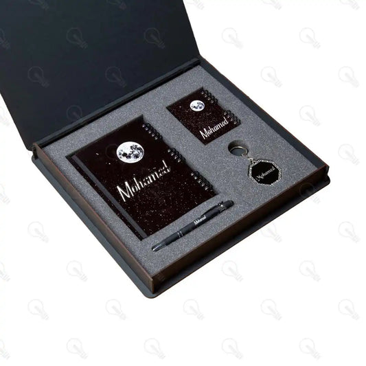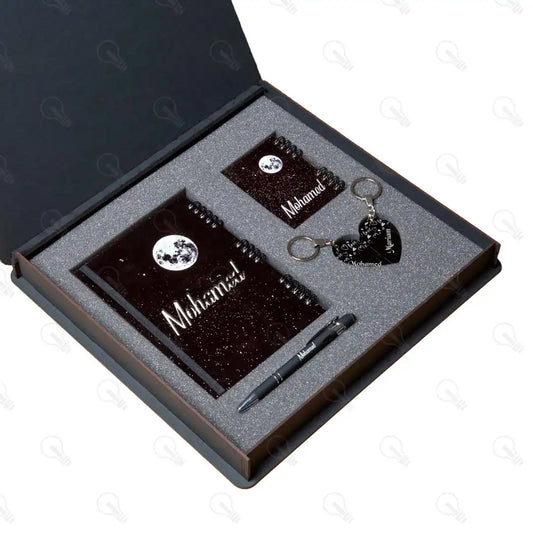 بوكس نوت بوك خشب كبيرة ونوت ميني وقلم معدن و ميدالية اكريليك نصين (كود 6)