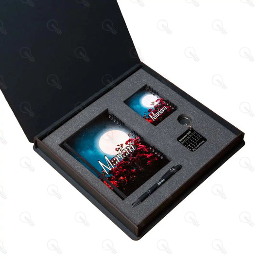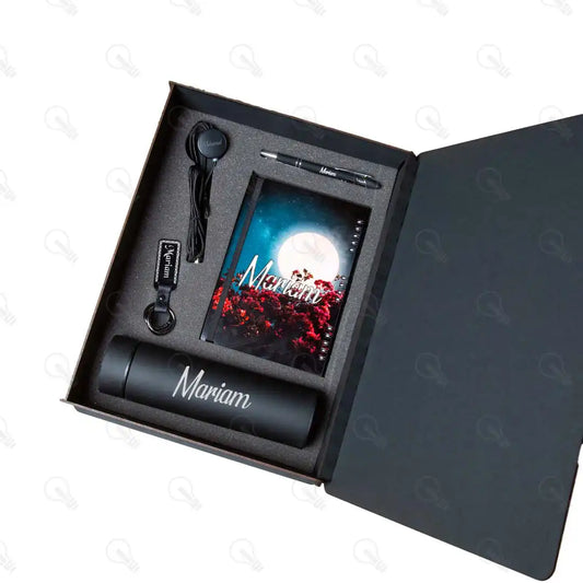 بوكس مج ديجيتال ونوت بوك خشب وقلم معدن و ميدالية اكريليك ووصلة مضيئة
