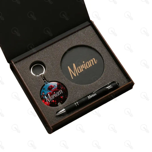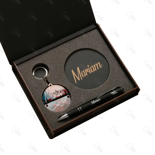 بوكس قلم معدن وكوستر خشب وميدالية اكريليك (كود 2)