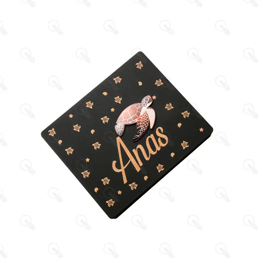 بوكس قلم معدن وكوستر خشب وميدالية اكريليك (ديزاين السلحفاة)