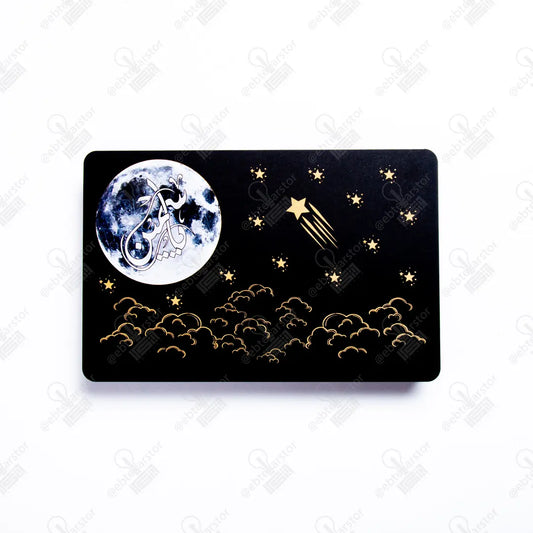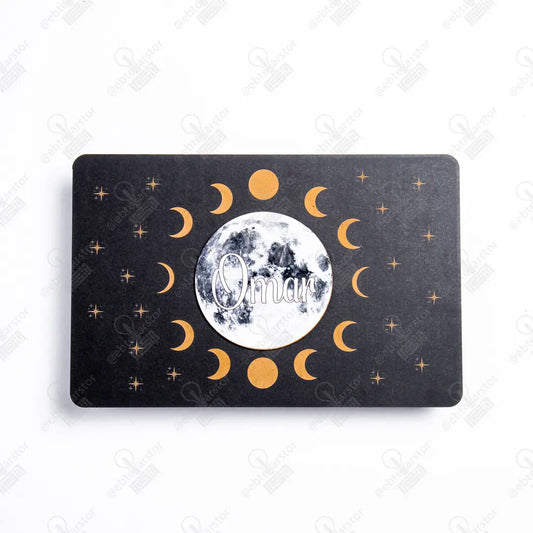 بوكس نوت بوك خشب (ديزاين القمر كود 2) وقلم معدن وميدالية خشب نصفين