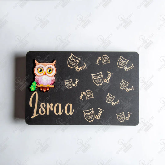 بوكس نوت بوك خشب (ديزاين البومة) وقلم معدن وميدالية خشب