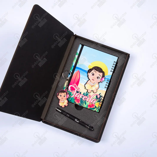 بوكس نوت بوك خشب (ديزاين موانا) وقلم معدن وميدالية خشب