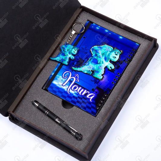 بوكس نوت بوك خشب (ديزاين فروزن كود 3) وقلم معدن وميدالية خشب