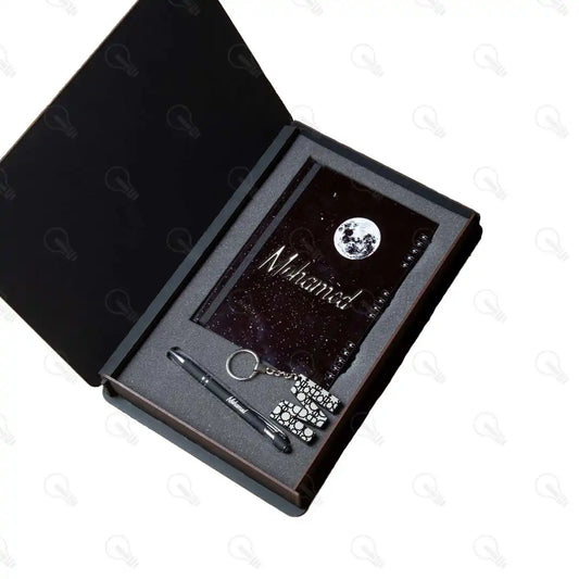 بوكس نوت بوك خشب وقلم معدن و ميدالية اكريليك مجسمة (كود 2)