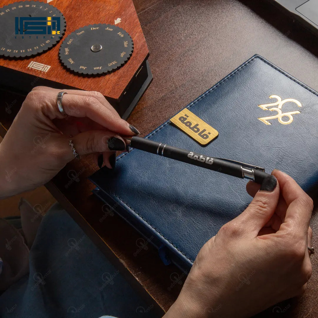-مُخصص ليك: البوكس والأجندةوالقلم بيجوا باسمك محفور عليهم عشان تبقى هدية شخصية ومختلفة ، وكمان تقدر تنفذ لوجو شركتك