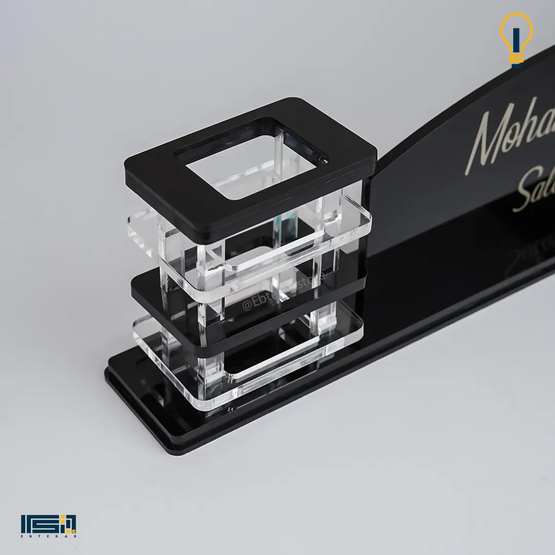 الستاند الأكريليك ده هو الحل الأمثل! بتصميمه الأسود الأنيق. هيدي مكتبك لمسة رقي لا مثيل لها.