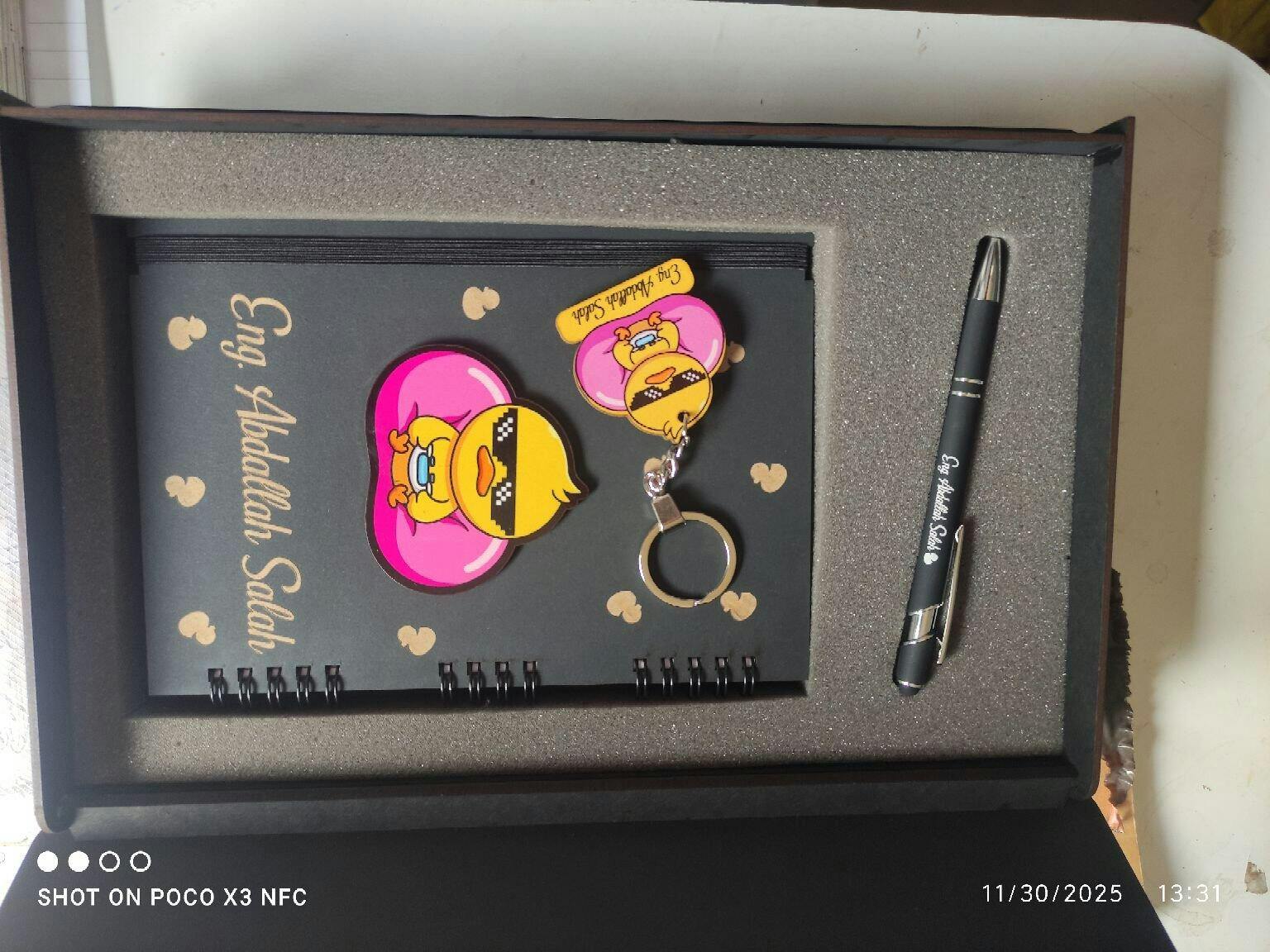 متشكر جدا جدا .. الاوردر وصل بحاله ممتازه و متغلف بحرص و اهتمام … تسلم ايدكم الديزاين حلو نفس المطلوب و خامه الخشب و الورق و الميداليه و القلم ممتازه و البوكس تحفه و وصل في بالمعاد .. اكيد باتعامل معاكم مره ثانيه