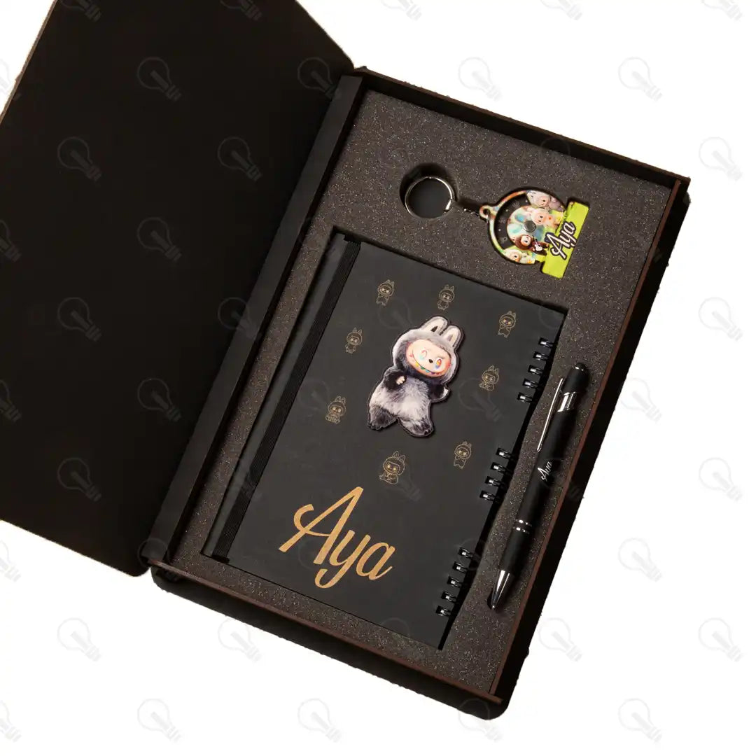 بوكس الهدايا ده هو الاختيار الأمثل! البوكس ده بيجمعلك 3 قطع تحفة: نوت بوك خشب شيك جداً بتصميم مميز وبسيط، ومعاه قلم معدن فخم عشان تكمل الأناقة وكمان تقدر تستخدمه لتاتش الموبايل، وكمان ميدالية خشب طبقتين أنيقة عشان تبقى معاه في كل مكان.
