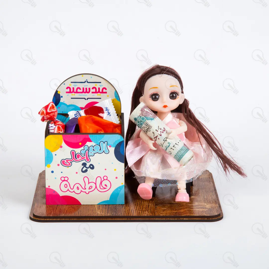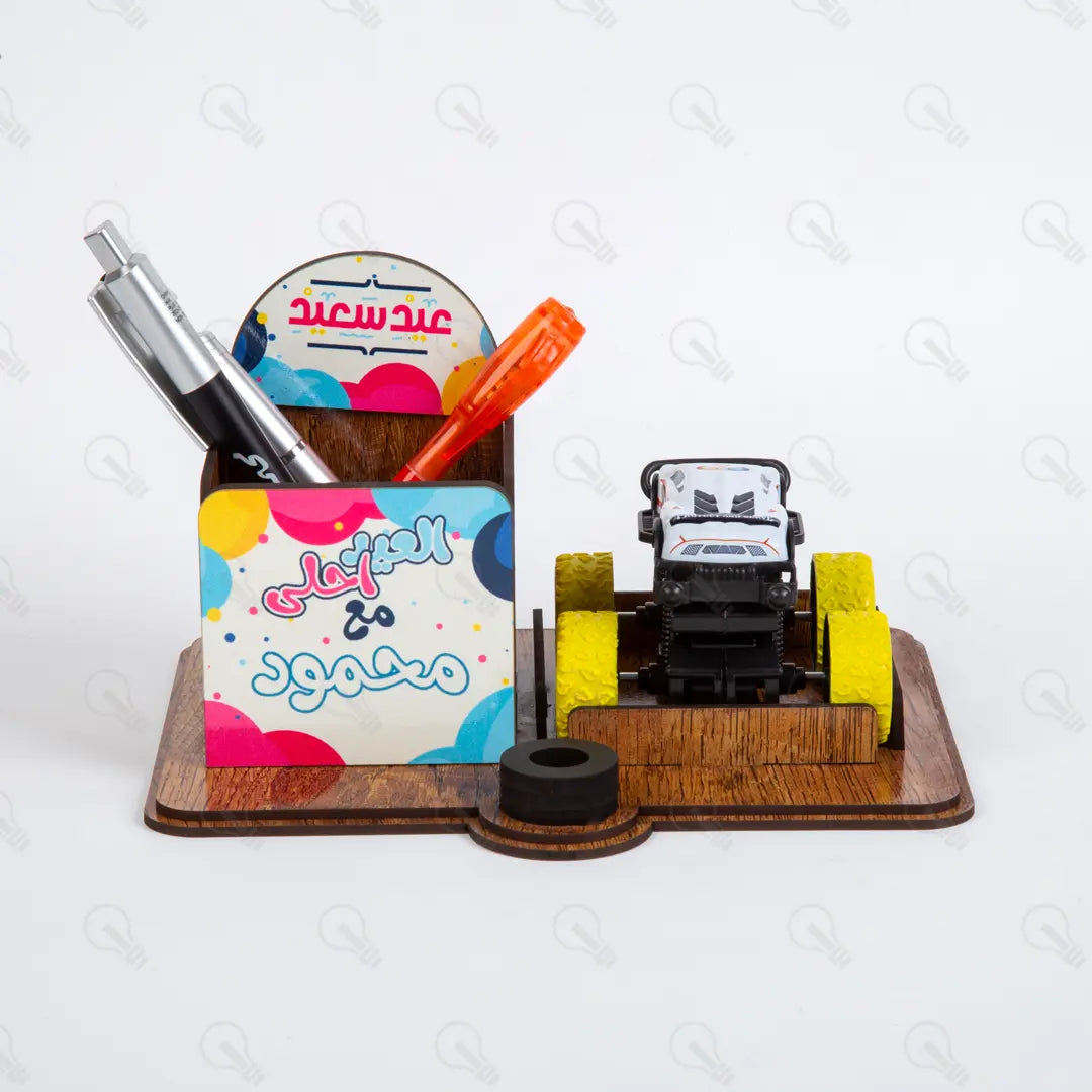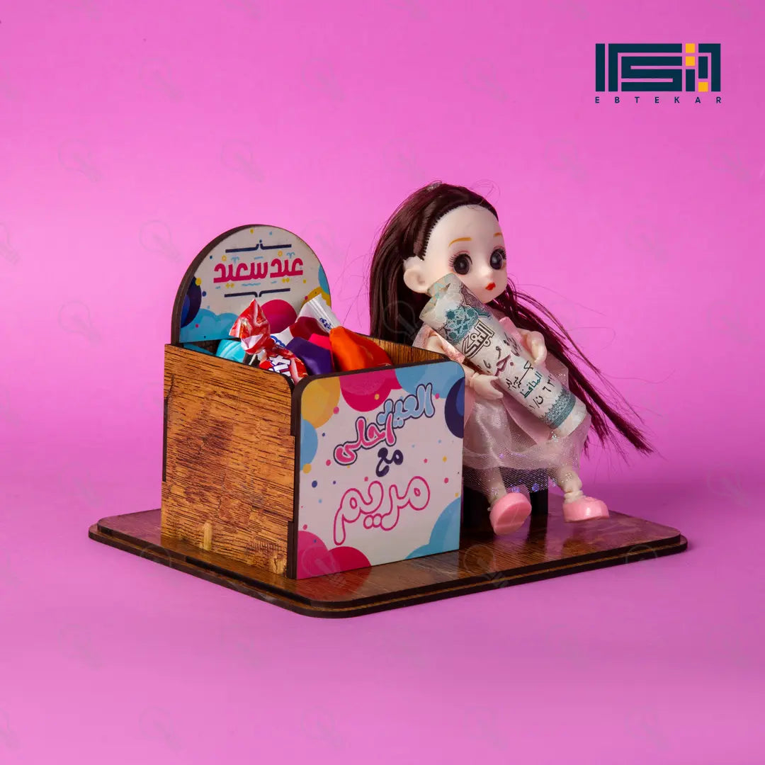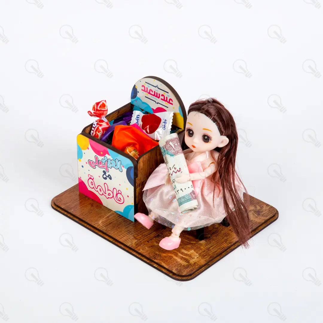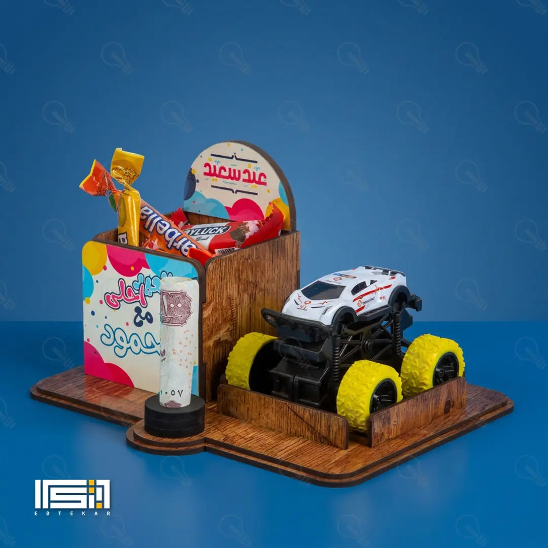 السنادي العيدية مش بس ورقة بفلوس، السنادي العيدية هي "ستاند إبتكار" اللي هيخطف أنظار ولادك وهيخلي يومهم كله سعادة. تخيلي فرحة بنتك وهي بتستلم العروسة الرقيقة اللي شايلة العيدية في إيديها، أو انبهار ابنك بالعربية الجبارة اللي واقفة بكل فخامة وجنبها مكان مخصص للعيدية. الستاند مصنوع من أجود أنواع الخشب بتصميم "مقلمة" شيك جداً ومطبوع بألوان زاهية ومبهجة، والأهم من كل ده إننا بنطبع اسم طفلك أو جملة إهداء مخصوصة على الستاند عشان يحس إنه بطل العيد الحقيقي.