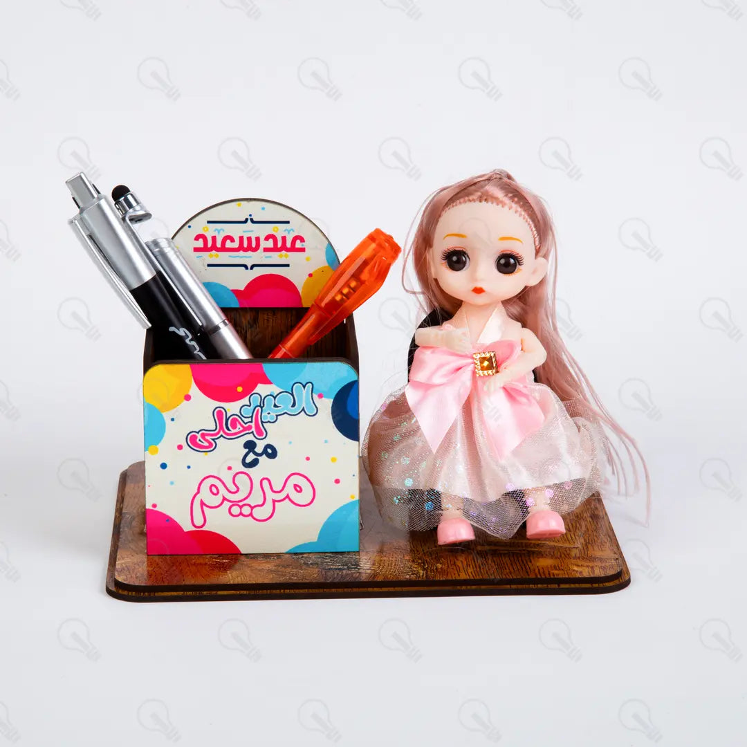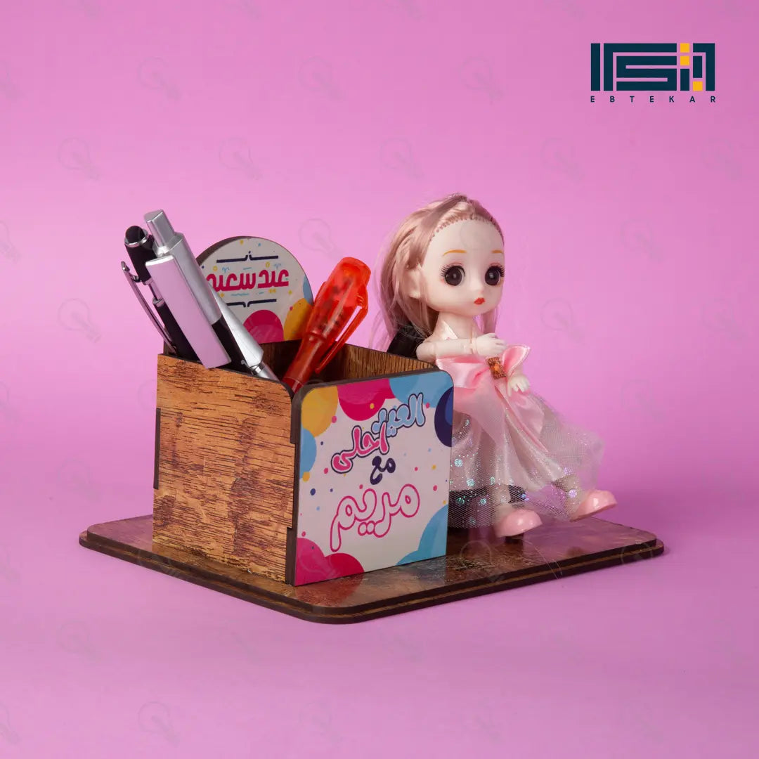 ستاند مصنوع من خشب عالي الجودة بتصميم "مقلمة" متين وطباعة حرارية ألوانها زاهية مش بتبهت. قطعة فنية بتعيش معاهم ذكرى، ويقدروا يستخدموها كديكور أو منظم لمكتبهم بعد ما يخلصوا الحلويات.