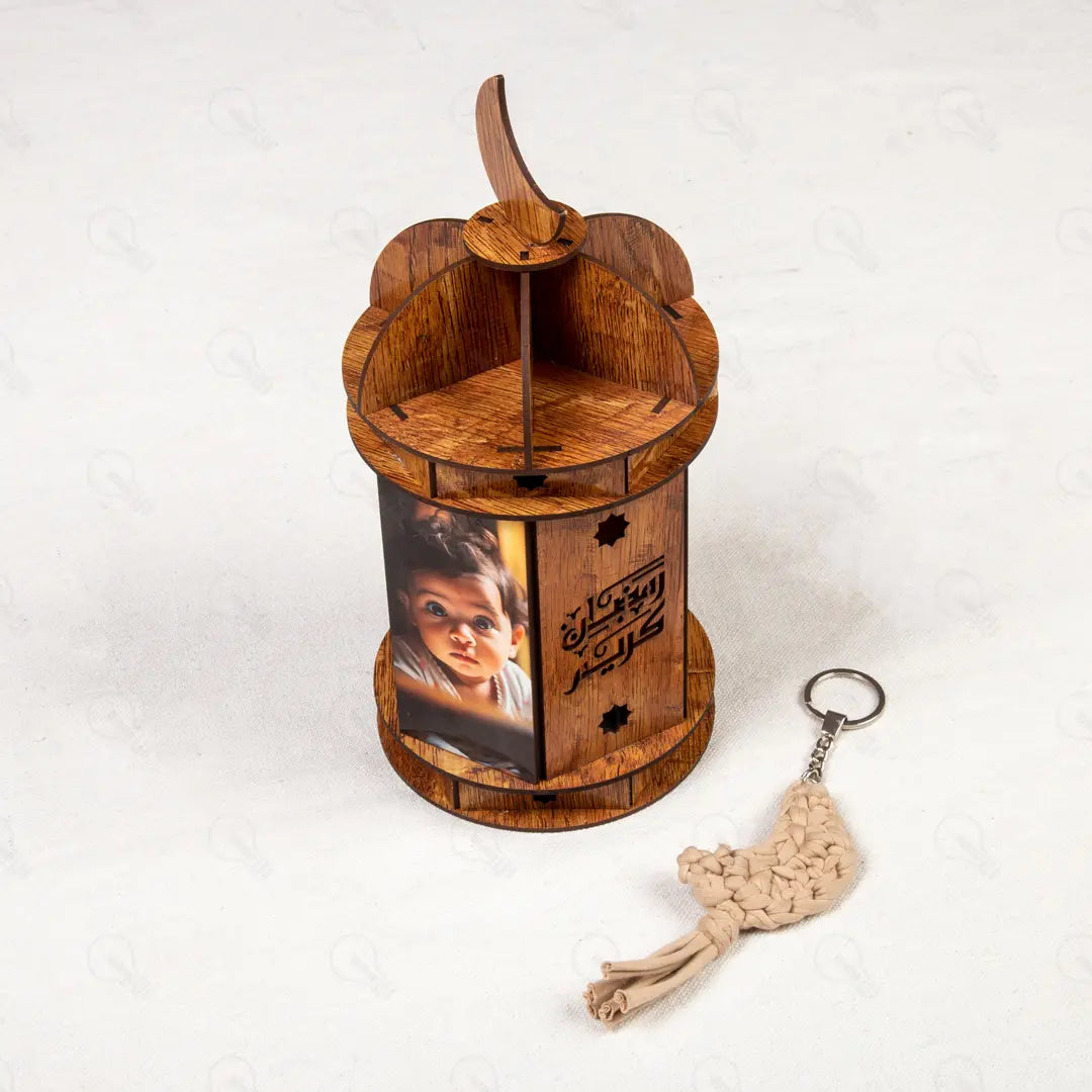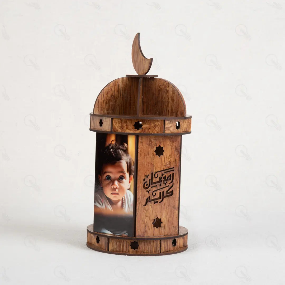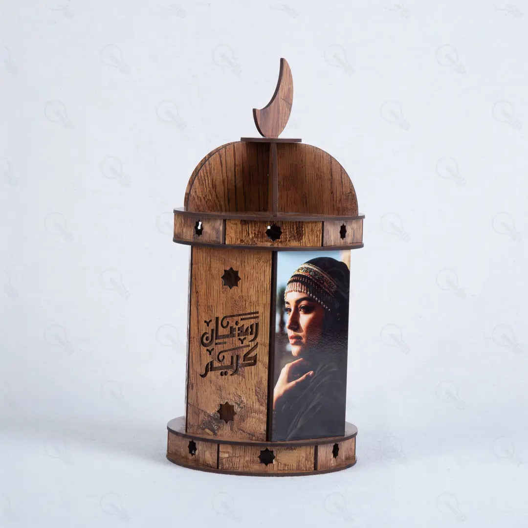 زهقت من الفوانيس التقليدية اللي بتترمي بعد العيد؟ الفانوس الخشب من "إبتكار" مش مجرد فانوس، ده قطعة ديكور فنية معمولة مخصوص عشانك. بنطبع عليه صورتك المفضلة واسمك أو اسم اللي بتحبه بدقة عالية، عشان يفضل معاك ذكرى حلوة كل يوم في رمضان والفانوس ينور بيتك بشكل جميل.