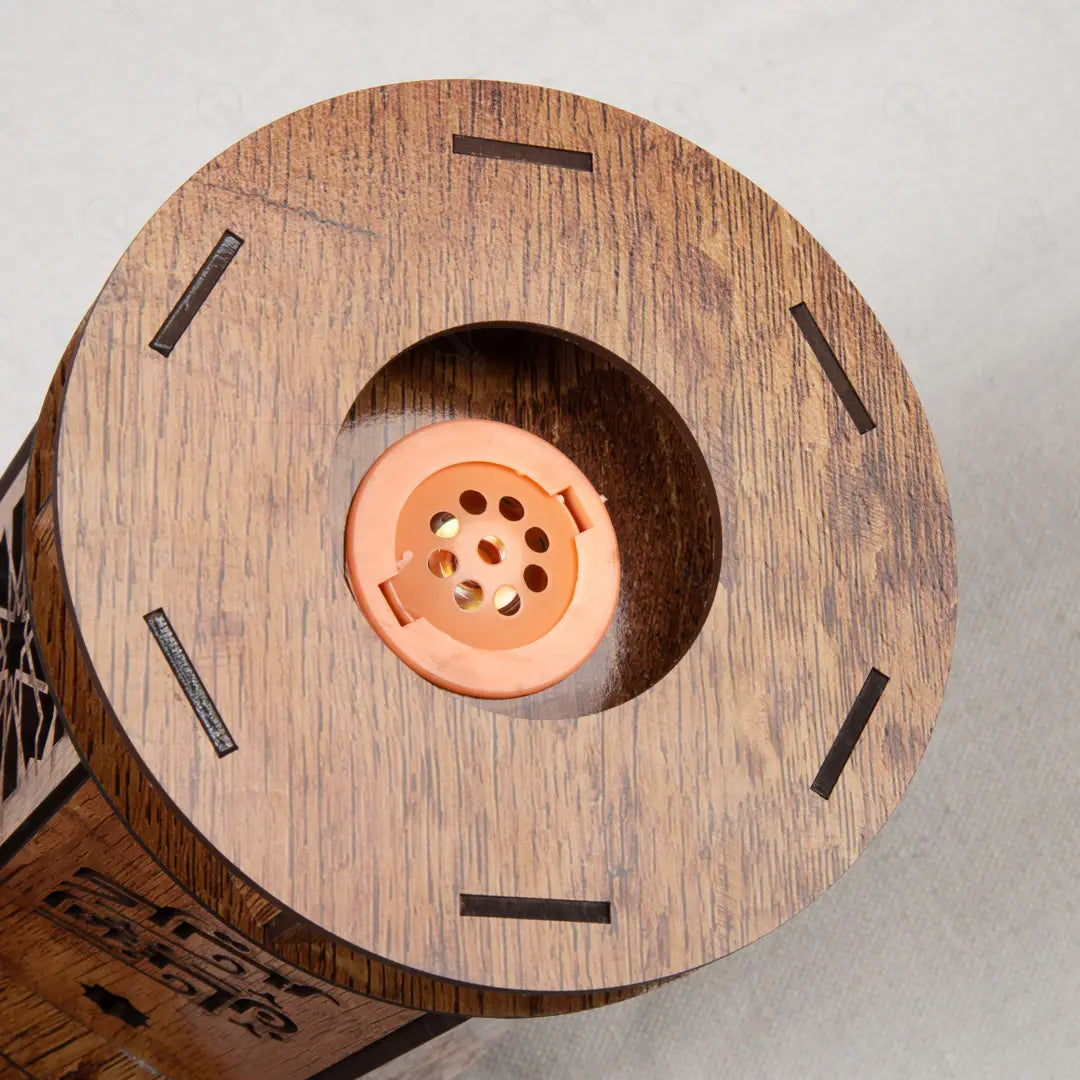 الفانوس مصنوع من أجود أنواع الخشب بمتانة تعيش معاك سنين. التقفيل والفينش احترافي، مفيش حواف للخشب، والتصميم بيجمع بين الشكل الإسلامي الكلاسيكي والألوان المودرن اللي يخليه يليق في أي ركن في البيت.