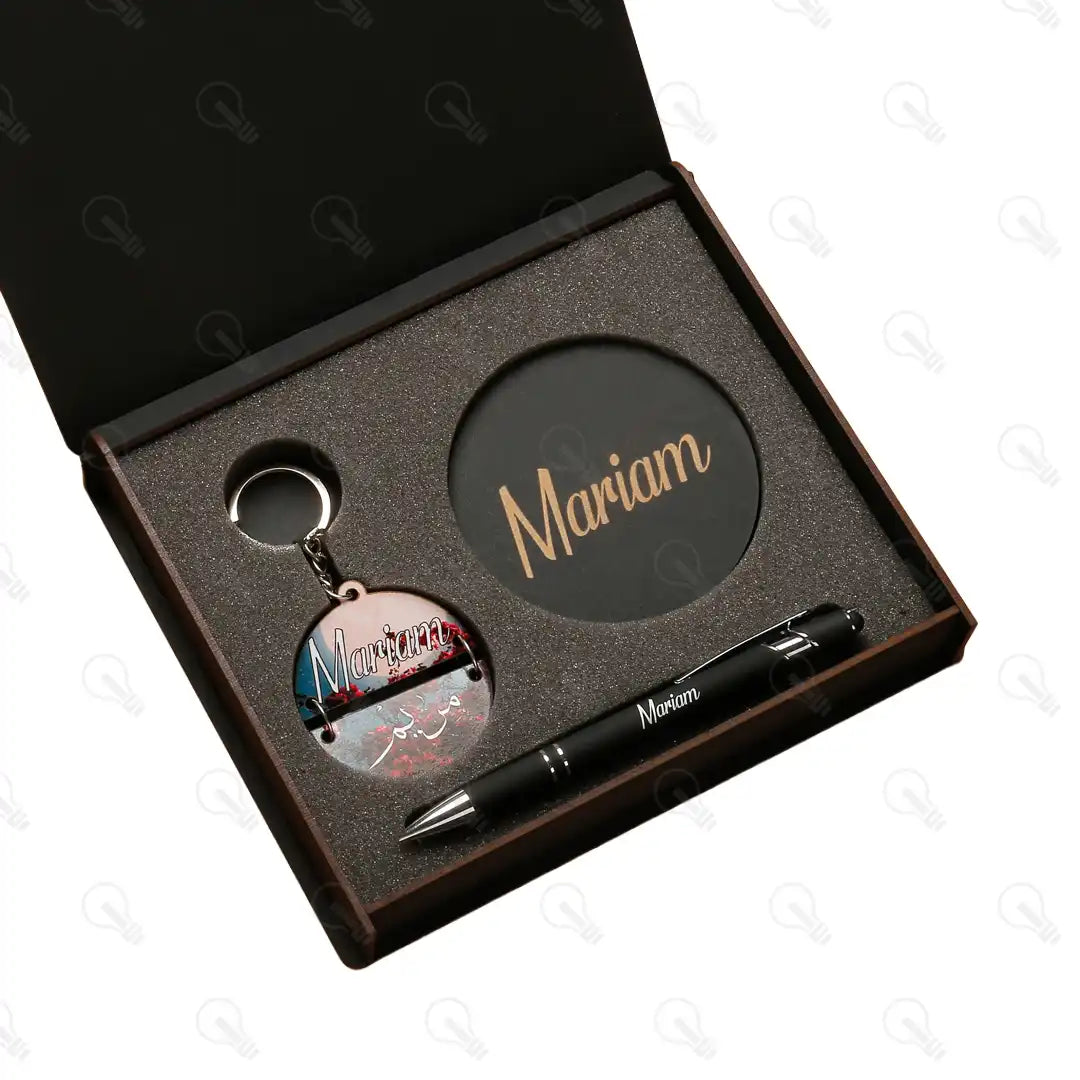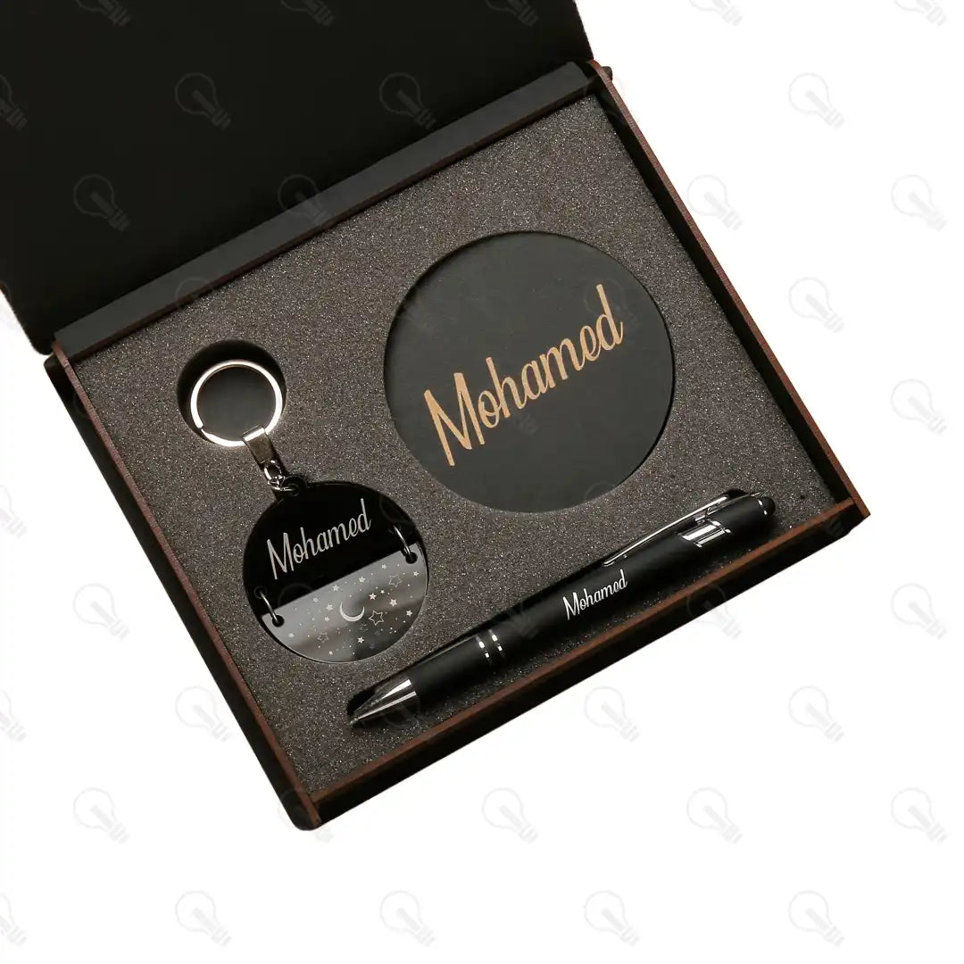 بوكس الهدايا ده هو الاختيار الأمثل! البوكس ده بيجمعلك قطع تحفة: قلم معدن فخم بخط سلس في الكتابة وبيسنخدم كتاتش للموبايل كمان، ومعاه كوستر خشب وميدالية خشب نصين تكمل هديتك عشان تكون شيك وعملية ومناسبة لاي شخص تقدمهاله.