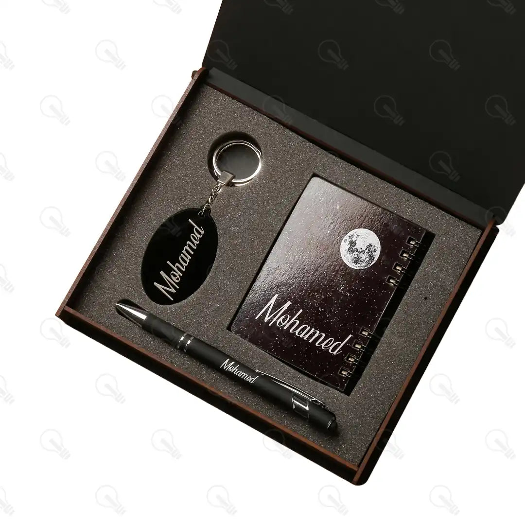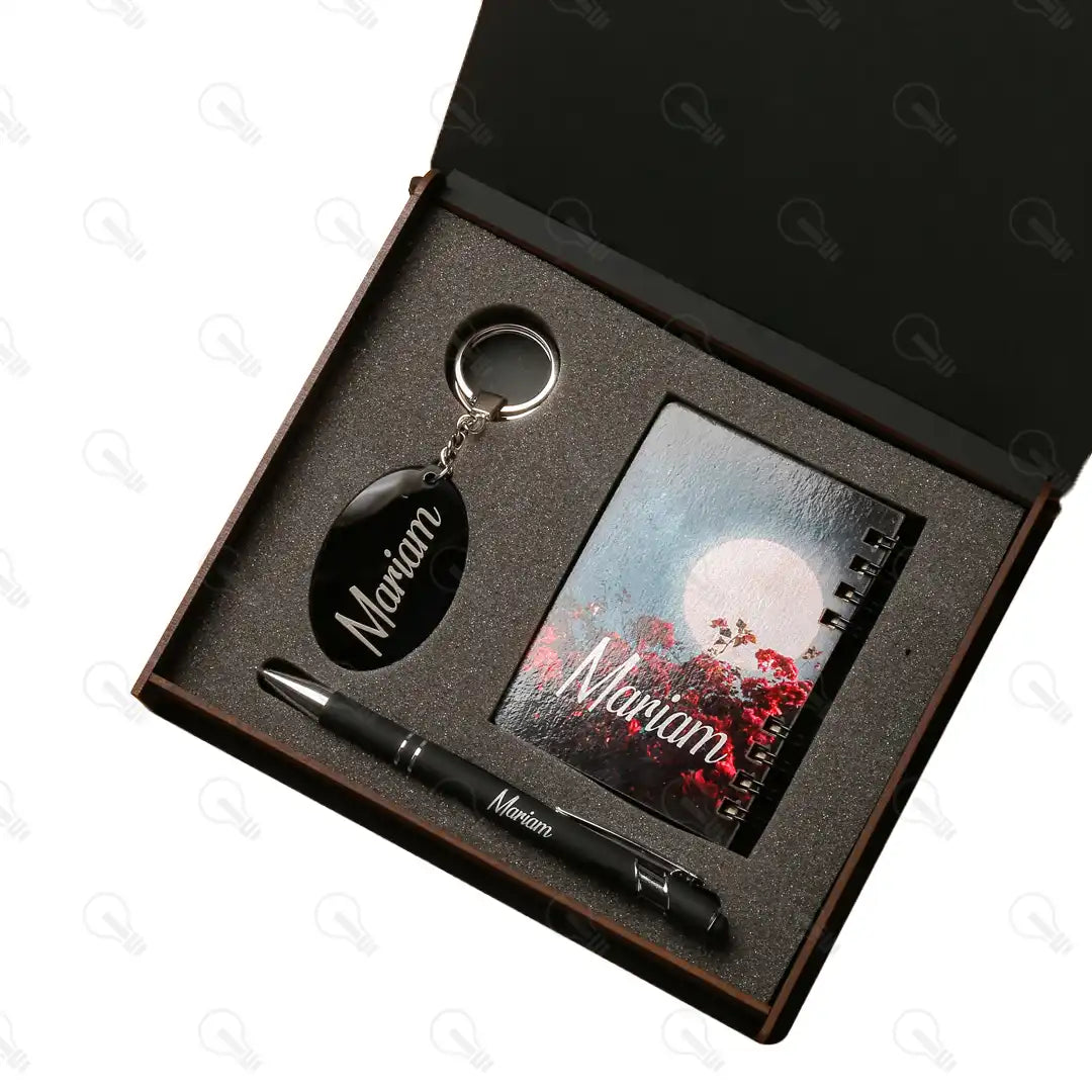 بوكس الهدايا ده هو الاختيار الأمثل! البوكس ده بيجمعلك قطع تحفة: قلم معدن فخم بخط سلس في الكتابة وبيسنخدم كتاتش للموبايل كمان، ومعاه نوت ميني وميدالية اكريليك تكمل هديتك عشان تكون شيك وعملية ومناسبة لاي شخص تقدمهاله.