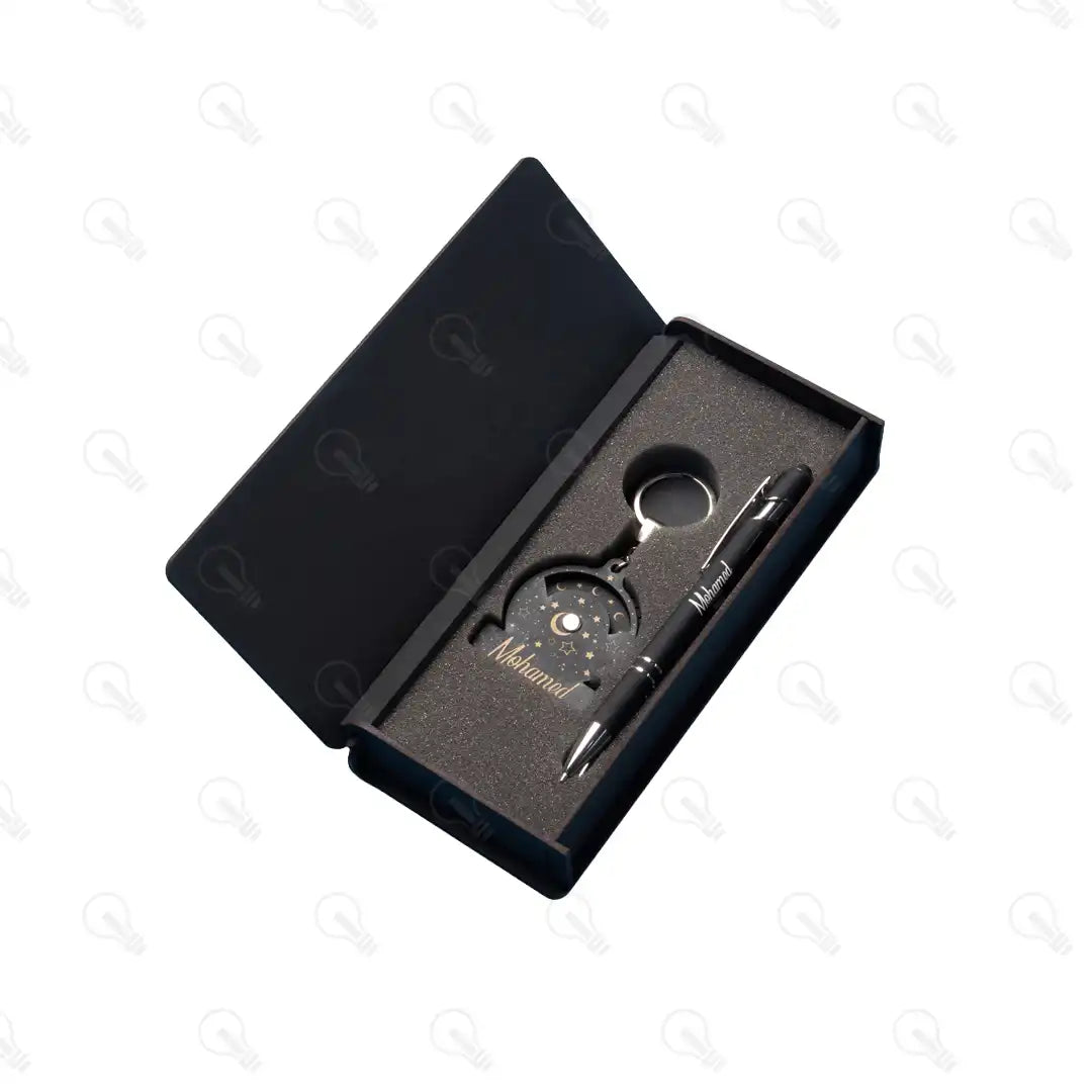 بوكس (ديزاين الفضاء كود 2) قلم معدن وميدالية خشب طبقتين