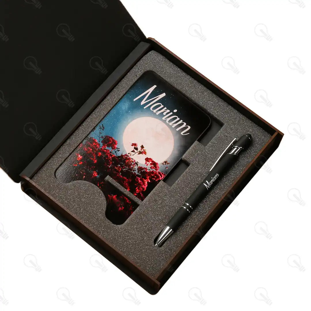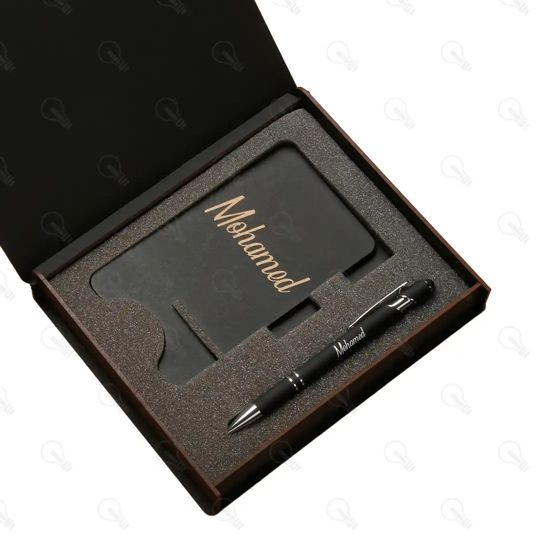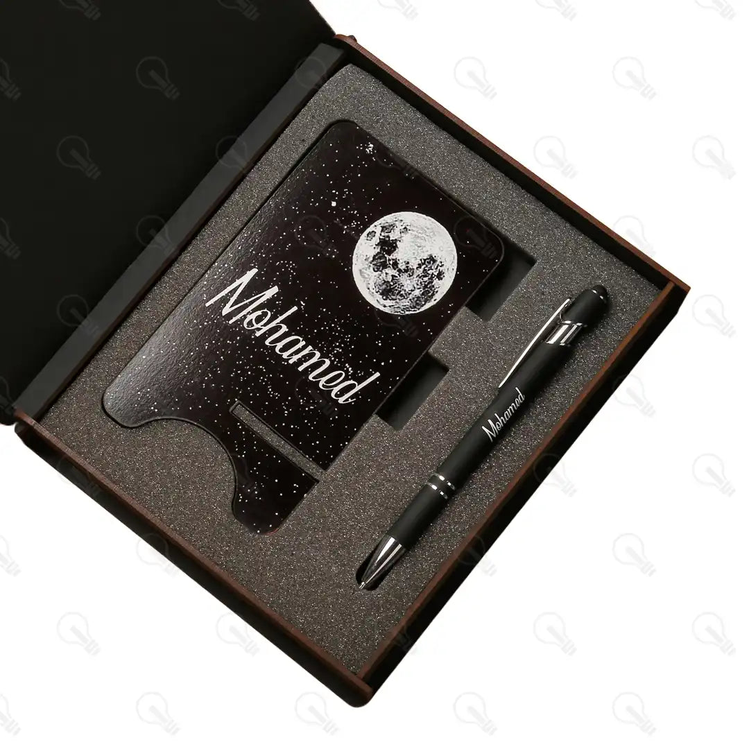 بوكس الهدايا ده هو الاختيار الأمثل! البوكس ده بيجمعلك قطع تحفة: قلم معدن فخم بخط سلس في الكتابة وبيسنخدم كتاتش للموبايل كمان، ومعاه ستاند للموبايل بشكل شيك ومميز وفيه مكان للاقلام وفتحة للشاحن عشان يسهل عليك استخدام الموبايل علي مكتبك .