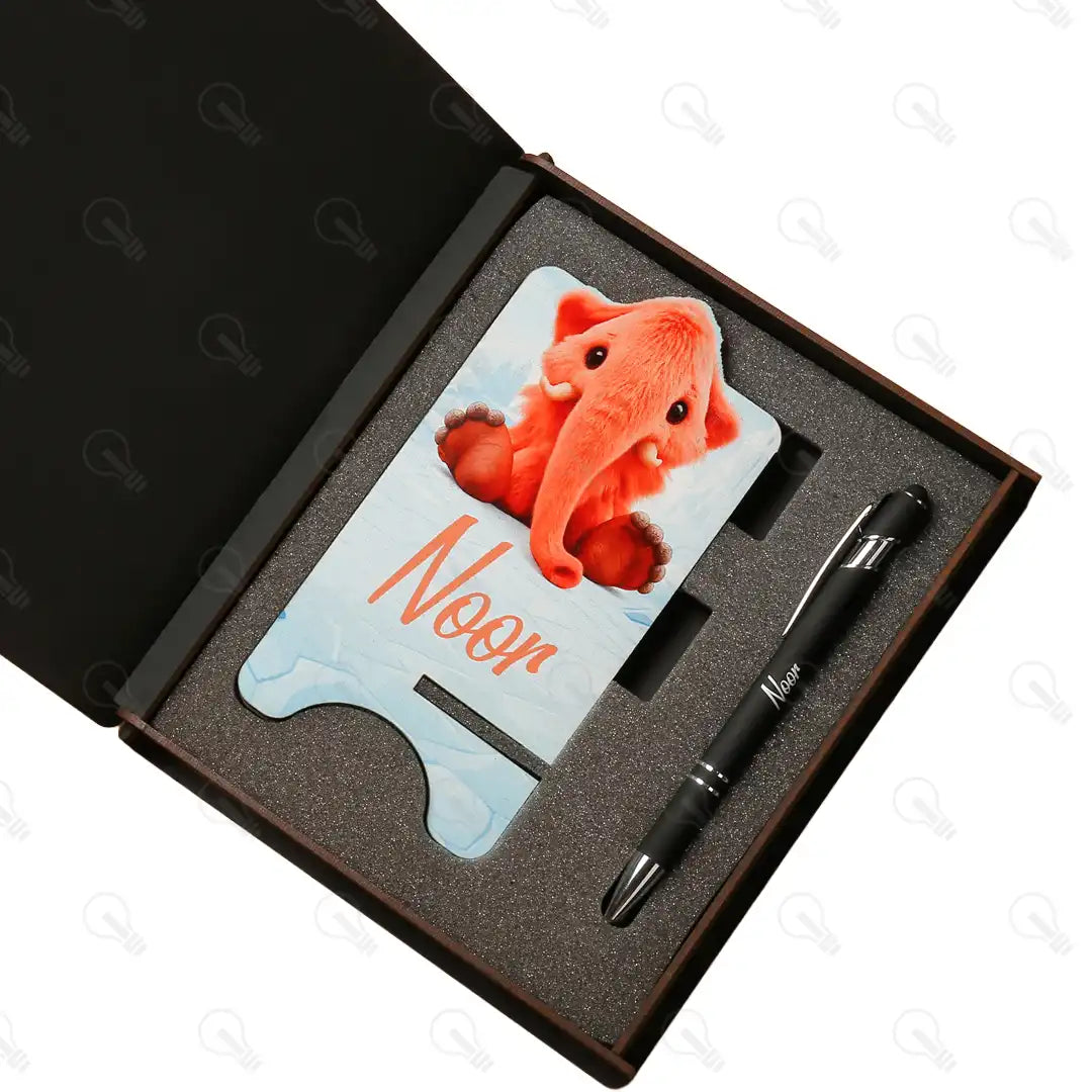 بوكس قلم معدن و ستاند موبايل (ديزاين الفيل)