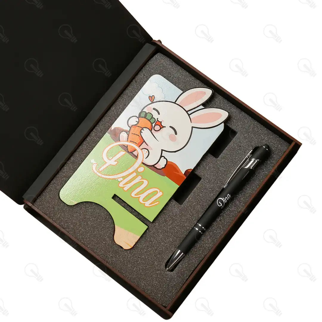 بوكس قلم معدن و ستاند موبايل (ديزاين الارنب)