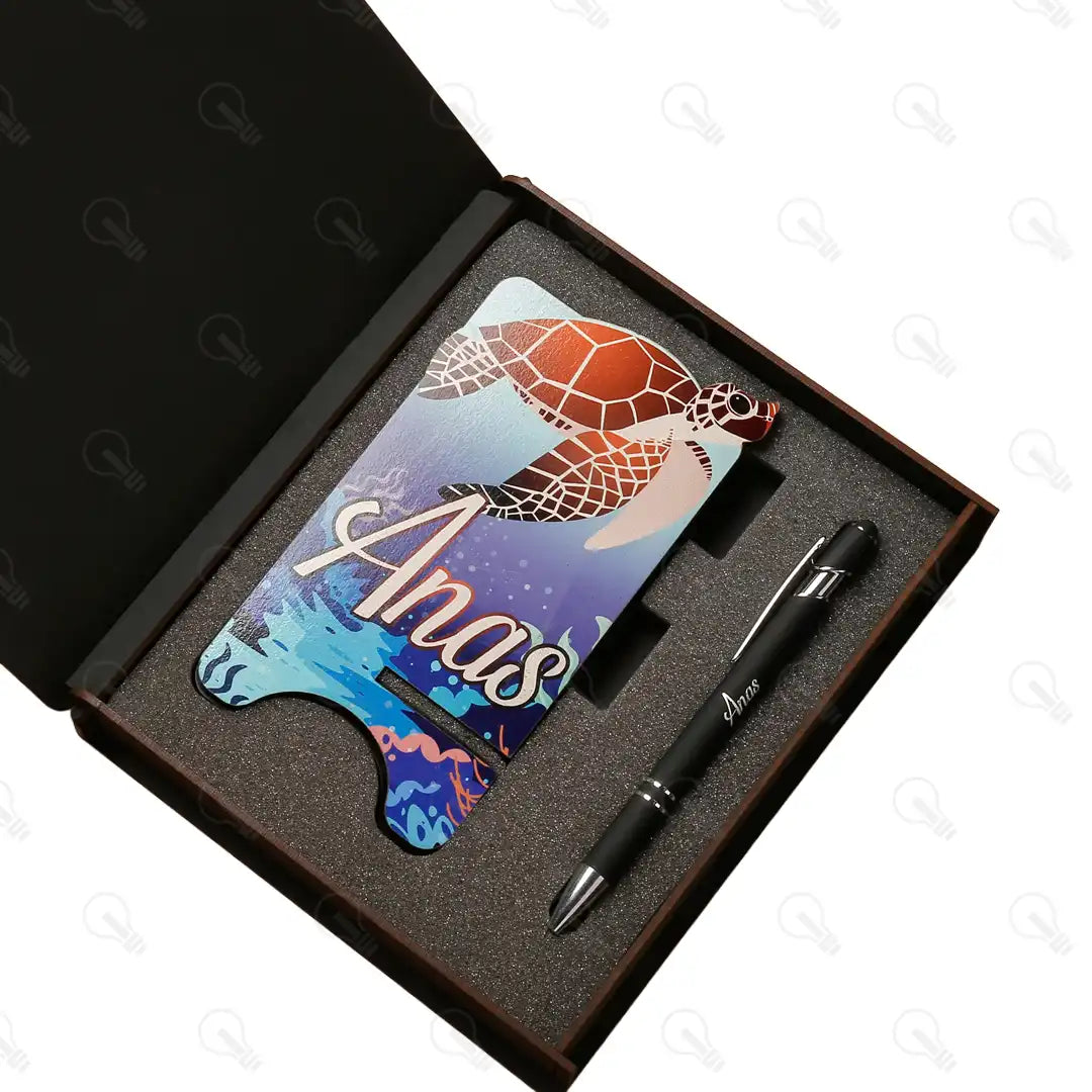 بوكس قلم معدن و ستاند موبايل (ديزاين السلحفاة)