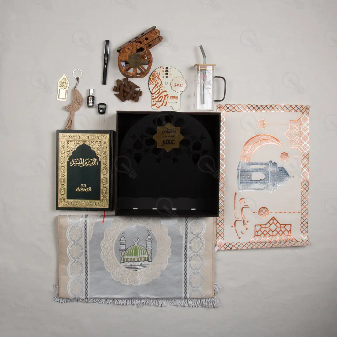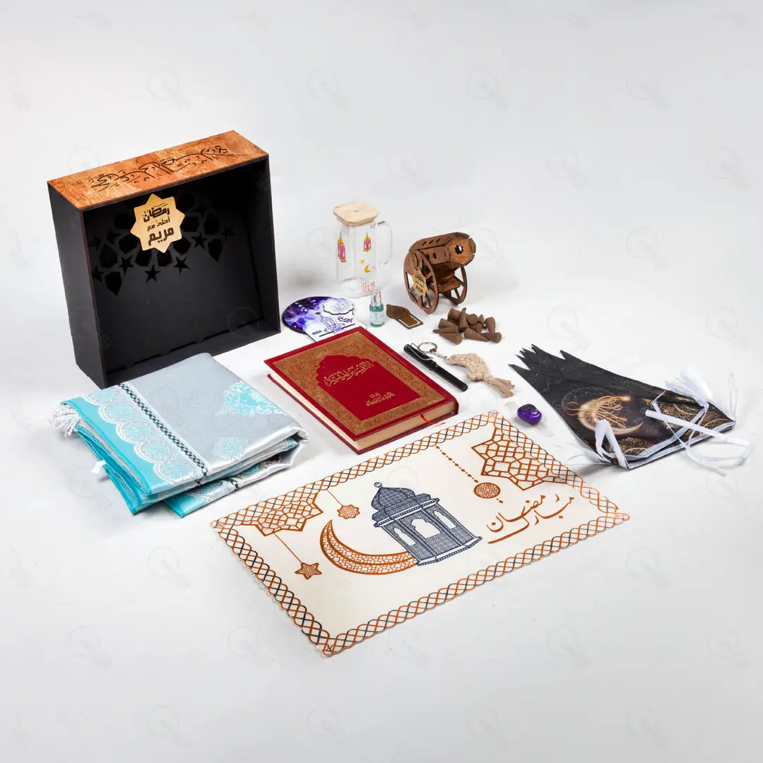 بوكس واحد بيغنيكِ عن شراء كل قطعة لوحدها؛ من المصلية والمصحف لحد الزينة والمبخرة، كل شيء منسق ومجهز لكِ في هدية واحدة شيك وقيمة.