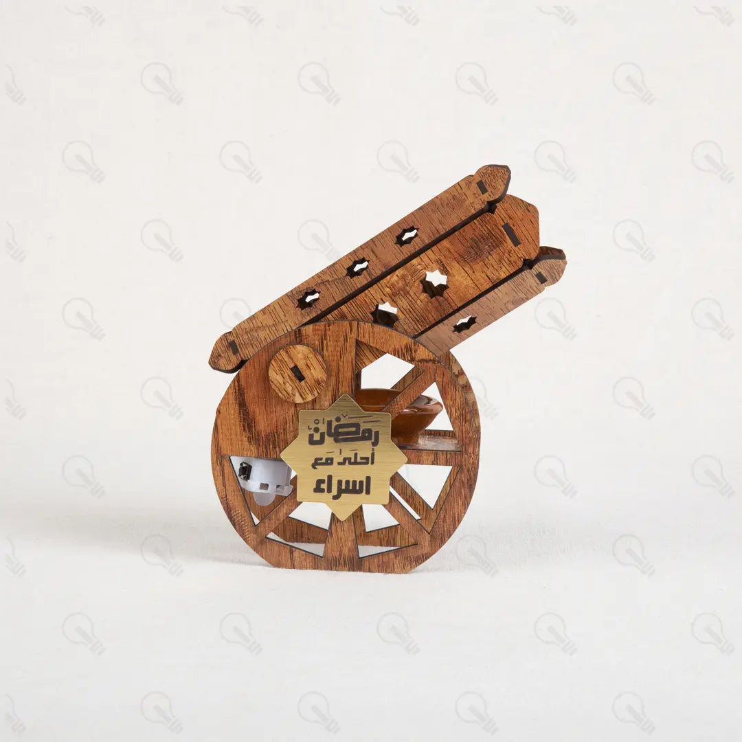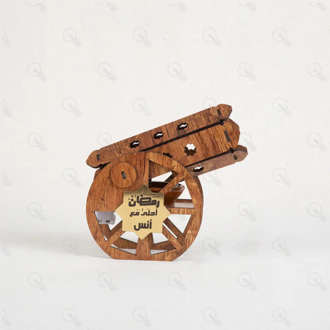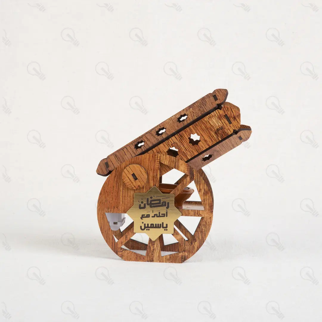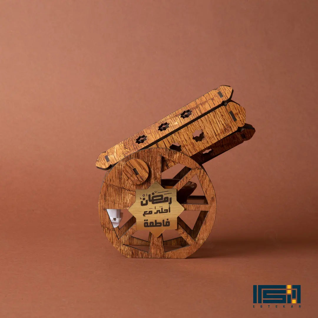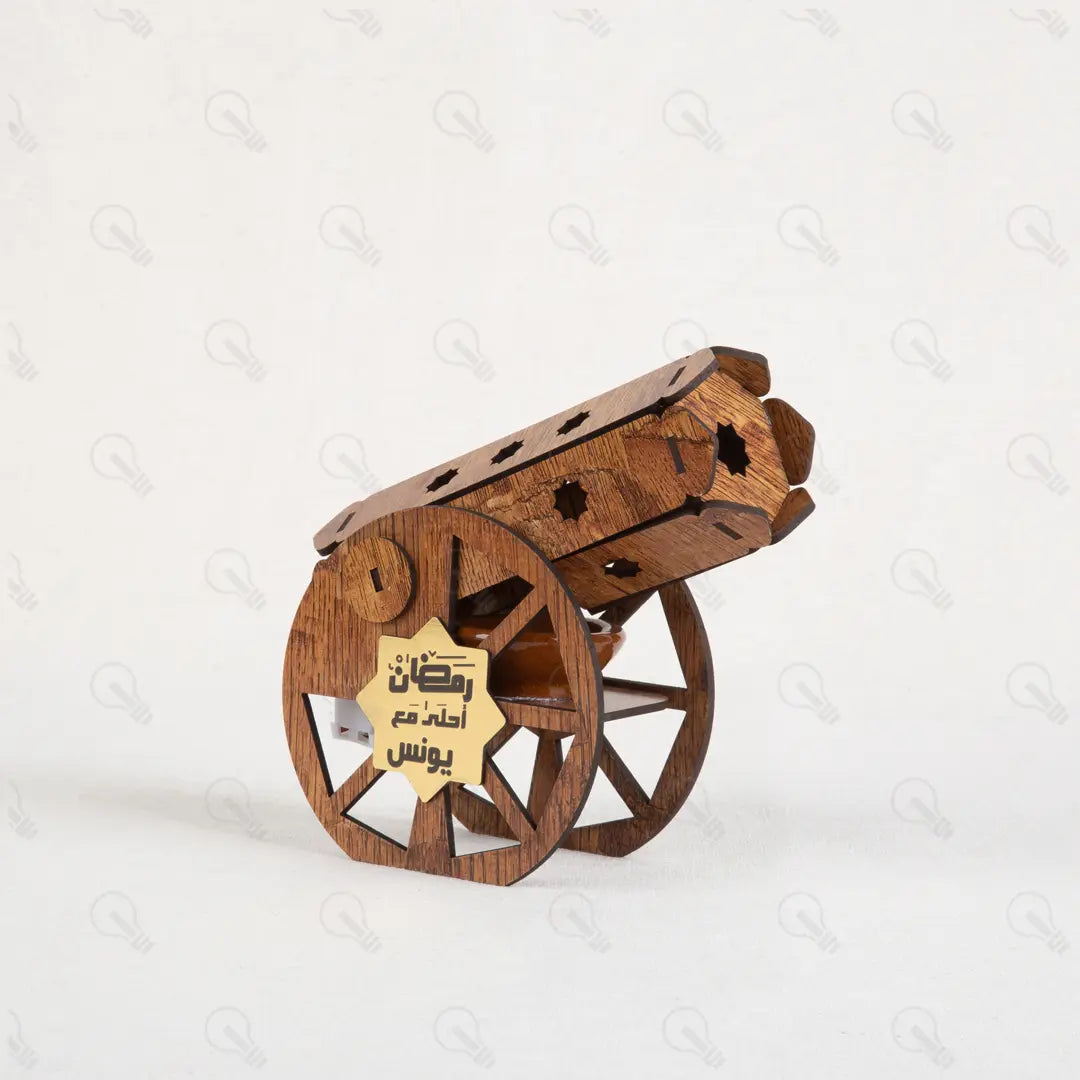 ريحة رمضان في بيتك بشكل جديد! السنادي "إبتكار" بتقدم لك مدفع رمضان اللي هيقلب موازين الديكور عندك. ده مش بس شكل، ده مبخرة خشبية فخمة بتملى البيت بريحة البخور التراثية اللي بنحبها. المدفع بيجي بتصميم خشبي مودرن، ومعاه طبق فخار صغير مخصص للبخور عشان تستخدميه وأنتِ مطمنة، وكمان معاه بخور أقماع هدية عشان تبدأي السهرة فوراً.