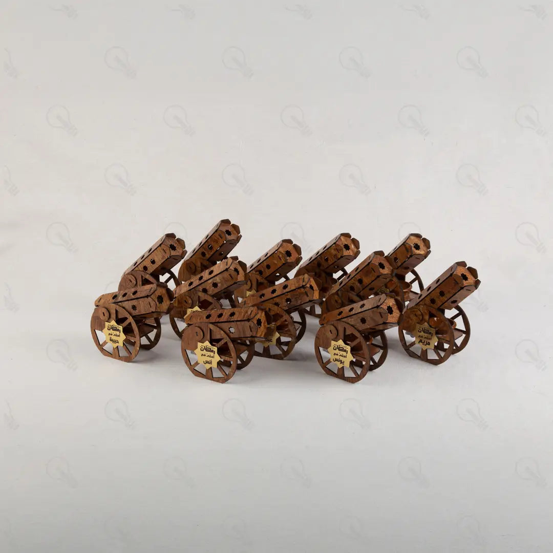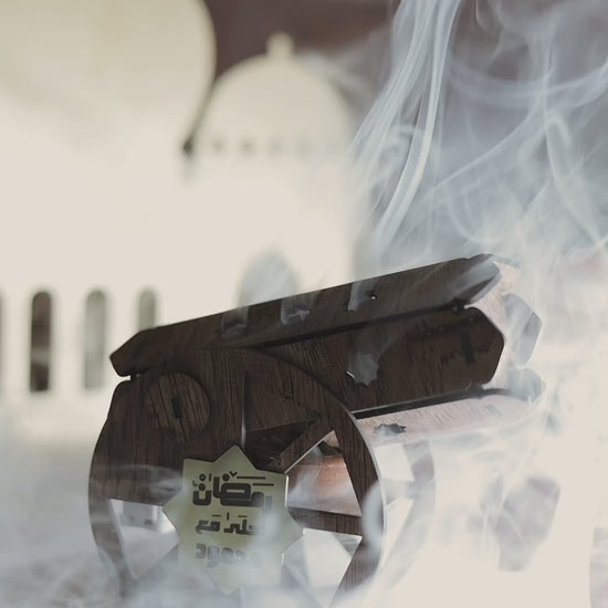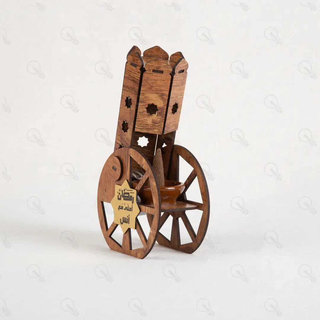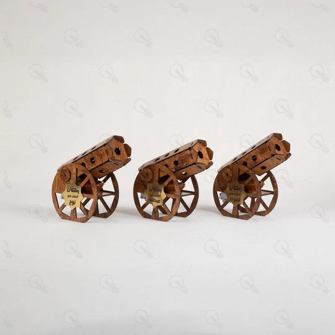 المدفع ده هيغنيكِ عن المباخر التقليدية؛ لأنه قطعة ديكور خشبية شيك جداً بتزين بيتك، وفي نفس الوقت هو مبخرة عملية فيها طبق فخار داخلي بيتحمل الحرارة. المدفع بيجي معاه بخور الأقماع الخاص بيه عشان يملى بيتك بريحة رمضان من أول دقيقة.