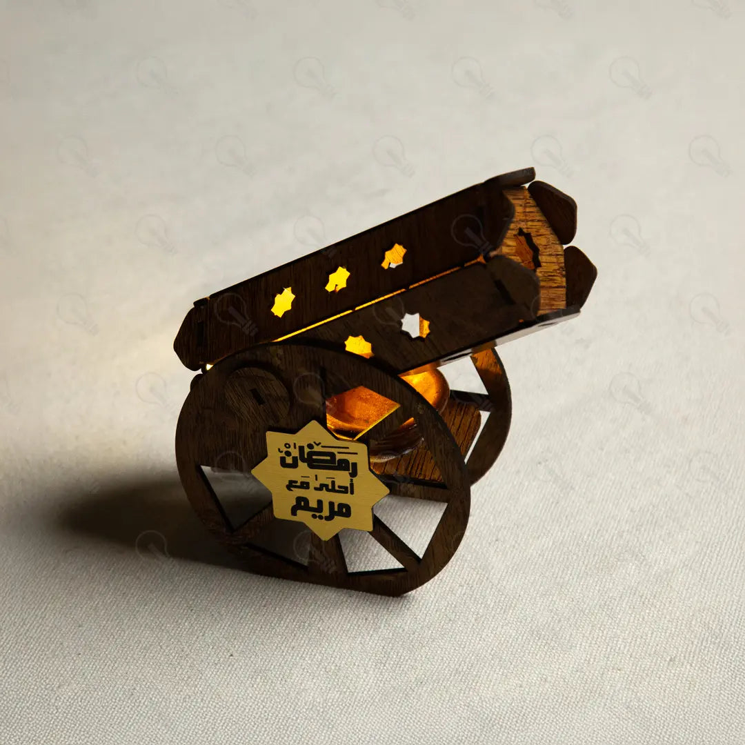 نور ودفء ولمسة شخصية باسمك المدفع ده مش بس هيخلي ريحة بيتك حلوة، ده كمان هينوره! مزود بإضاءة ليد بلون أصفر دافئ بتخرج من الزخارف المحفورة ليزر وتعمل جو شاعري في البيت. واللمسة الأهم هي "التخصيص"؛ تقدري تحفري عليه اسمك أو اسم اللي بتحبيه جنب جملة "رمضان أحلى مع" على نجمة ذهبية بتلمع في قلب المدفع، عشان يكون أحلى هدية مميزة ومخصوصة.