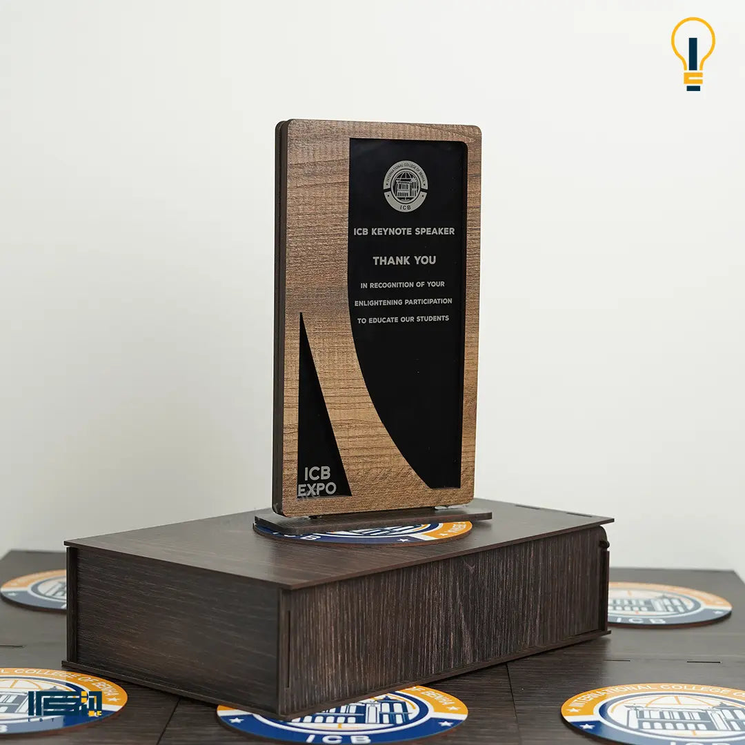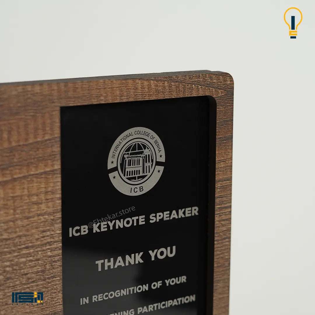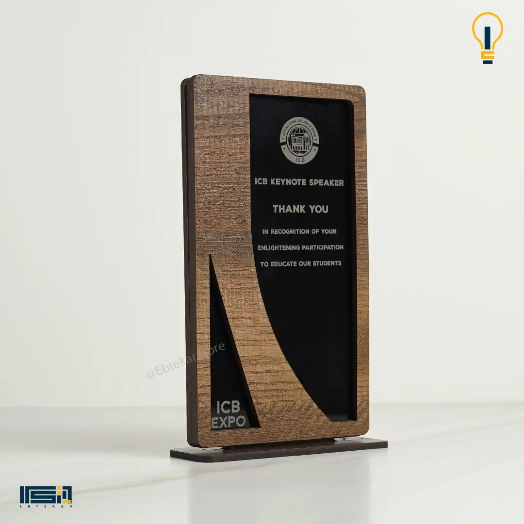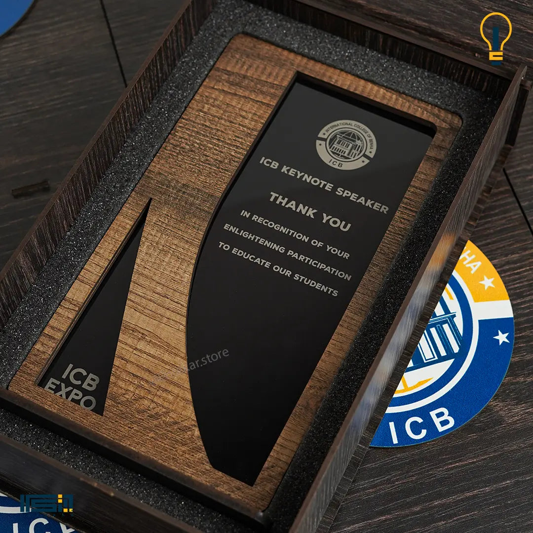 يبقى درع التكريم ده هو الاختيار الأمثل! ده مش مجرد درع عادي، دي تحفة فنية بتجمع بين فخامة الخشب وشياكة الأكريليك الأسود.